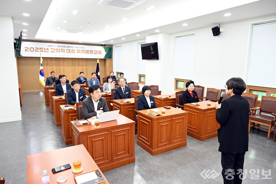 충남 보령시의회는 20일 의회 1층 회의실에서 의원과 사무국장, 수석전문위원 등 고위직 15명을 대상으로 '2025년 고위직 대상 폭력예방교육'을 실시했다.