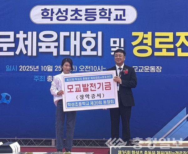 충북 진천군 학성초등학교 총동문회와 39회 동창회, 당구동호회에서 최근 학교 발전기금 200만원을 전달했다.