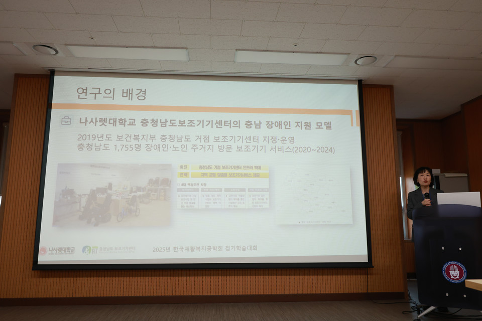 육주혜 책임교수는 스마트 재활복지의 ESG 적용 방안 연구 나사렛대학교 사례를 중심으로를 주제로 세션 구두 발표를 하여 충청남도형 스마트 재활복지 모델의 공공성과 확장 가능성에 대한 인식을 높였다.