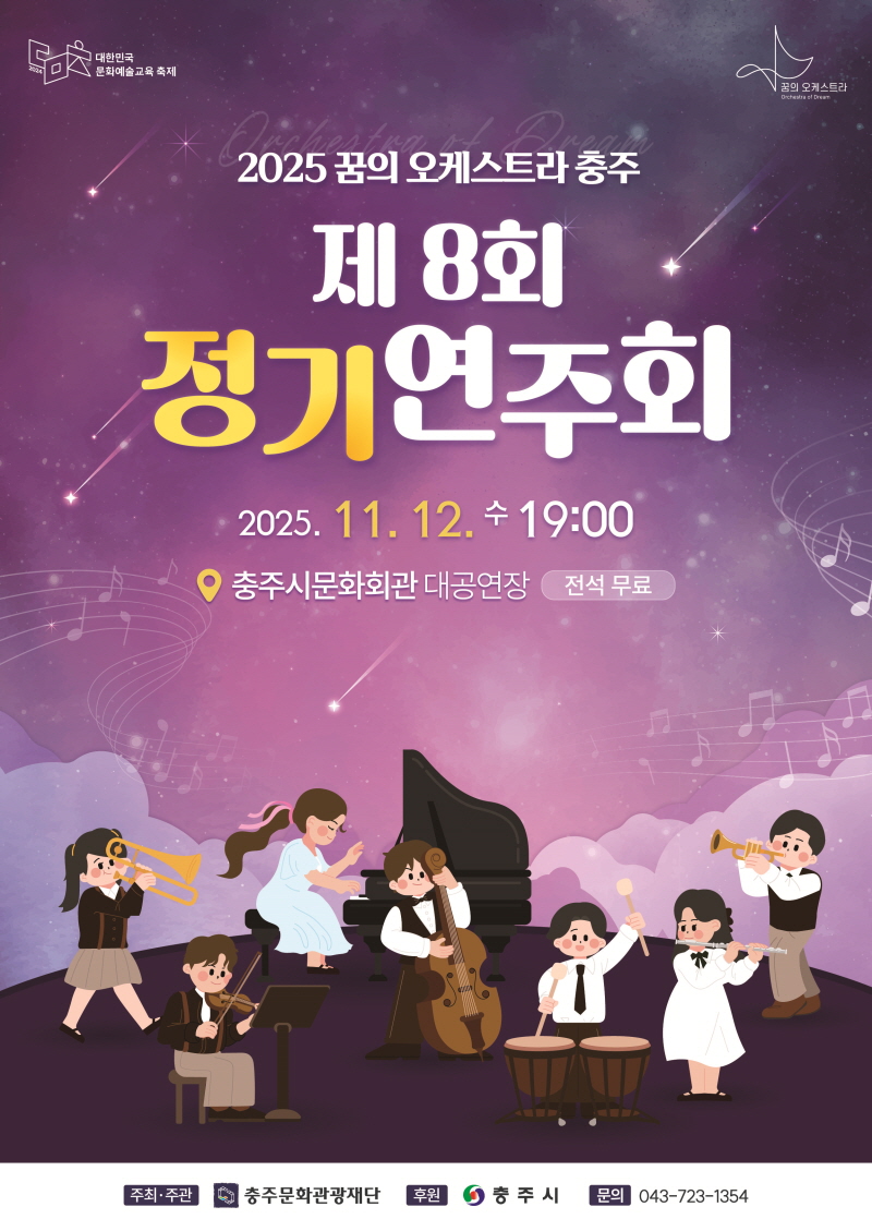 충북 충주문화관광재단이 오는 12일 오후 7시 충주시문화회관에서 '8회 꿈의오케스트라충주 정기연주회'를 연다.
