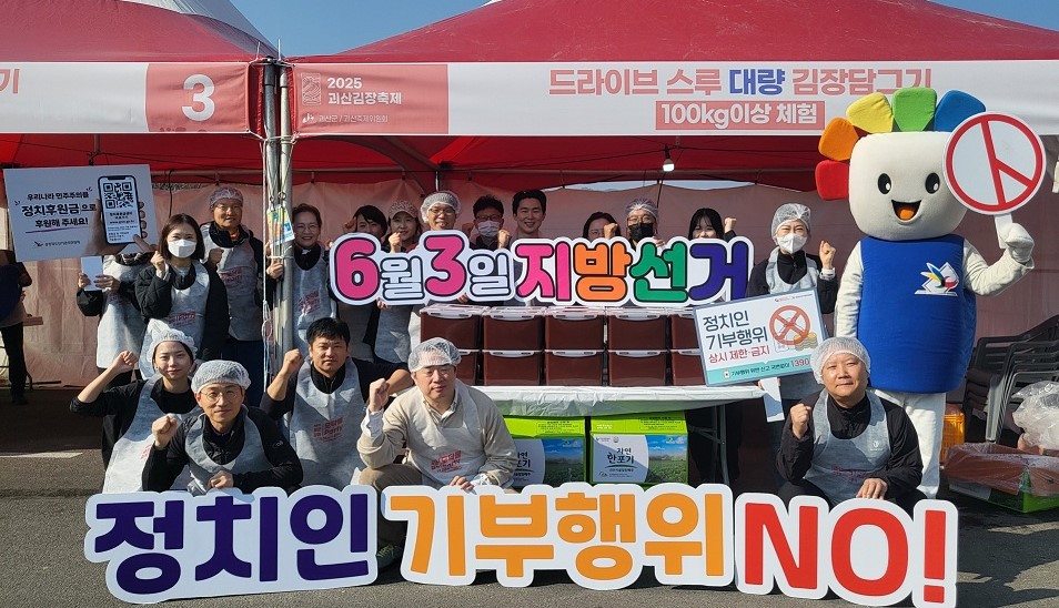 충북도선거관리위원회 희망봉사회는 지난 7일 괴산 김장축제에 참가해 현장에서 구입한 절임배추와 양념으로 김치를 담가 증평군장애인연합회를 통해 지역의 어려운 이웃들에게 기부했다.