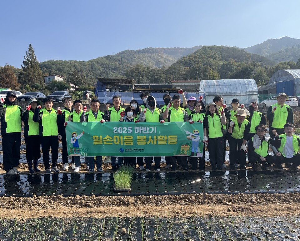 (재)충청북도기업진흥원(원장 신형근) 임직원 30여 명은 지난 7일 청주시 내수읍의 한 양파 농가를 찾아 ‘하반기 일손이음 봉사활동’을 실시했다. /김재옥기자