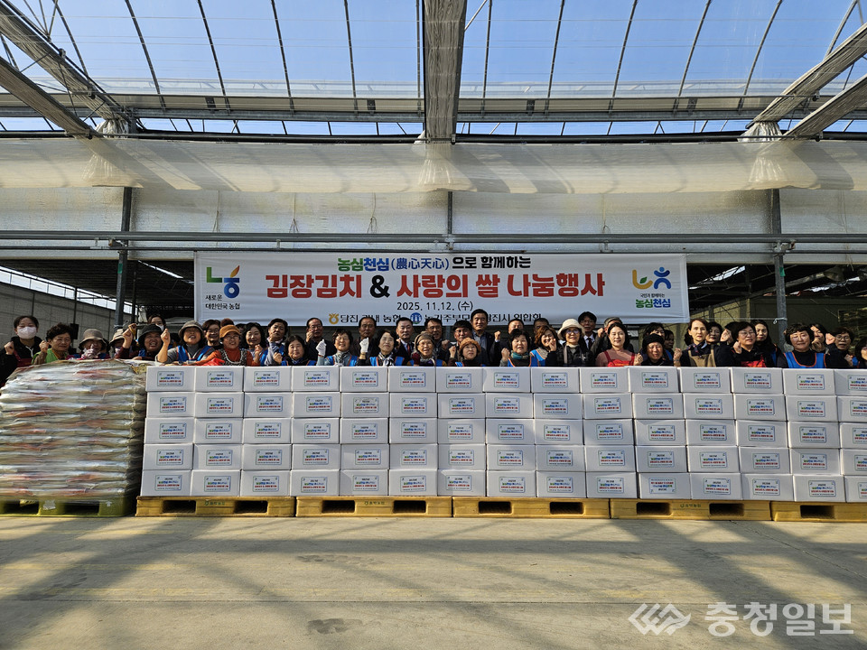 충남 농협 당진시지부(지부장 정광식)는 (사)농가주부모임 당지시연합회(회장 구문희)와 함께 12일'농심천심으로 함께하는 김장김치&사랑의 쌀 나눔행사'를 열고, 지역 내 어려운 이웃들에게 온정을 전했다 .