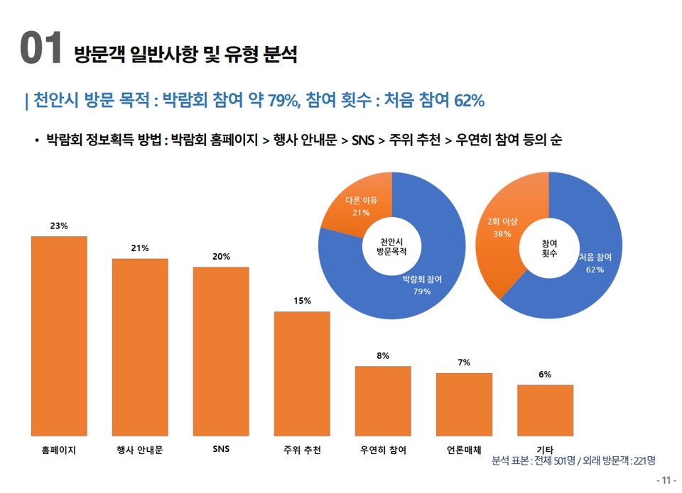 501명을 대상으로한 설문 조사 결과 30~40대 방문객이 55%, 동반 유형은 가족 단위가 78%에 달했다.