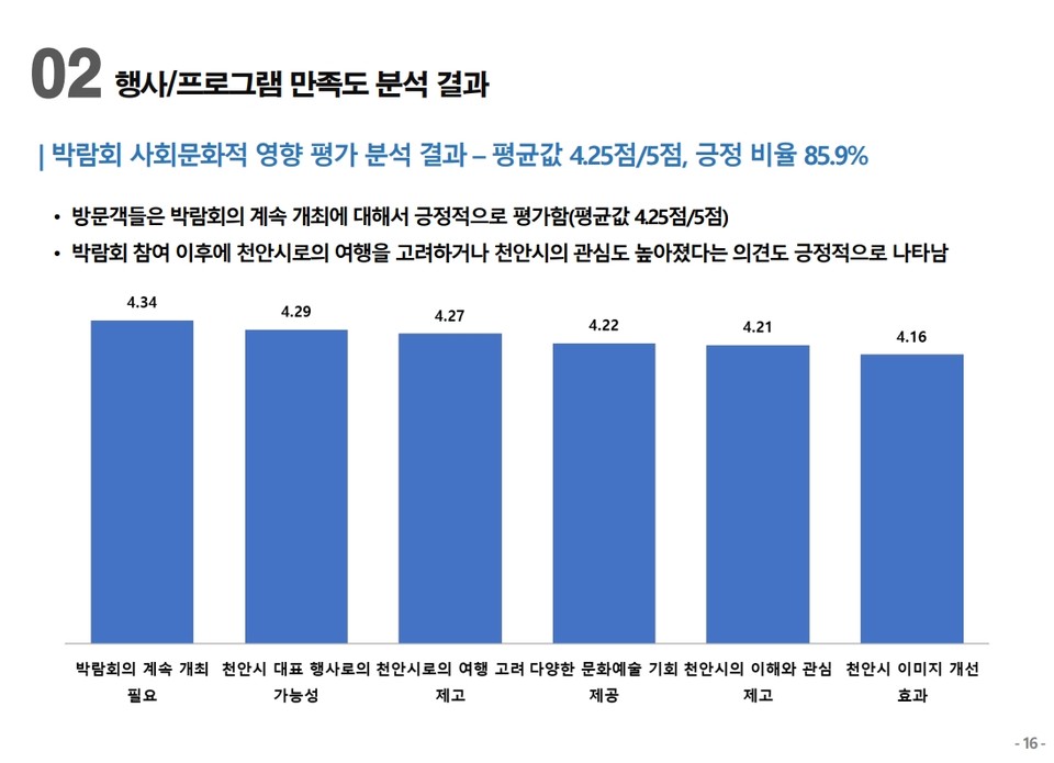 방문객 평균 만족도는 5점 만점에 4.11점(긍정 79.2%)으로 비교적 높은 평가를 받았다.
