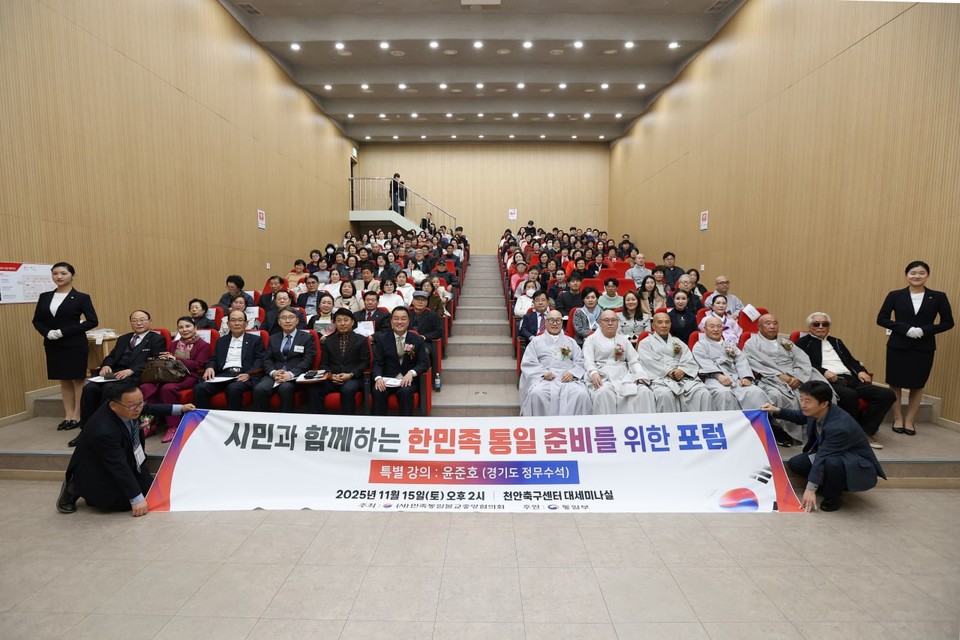 한반도 평화와 통일에 대한 국민적 공감대 형성을 목표로 한 ‘시민과 함께하는 한반도 통일 준비를 위한 평화포럼’이 15일 천안 축구센터 세미나실에서 성황리에 마무리됐다. 이번 행사는 (사)민족통일불교중앙협의회가 주최하고 통일부가 후원해 민과 관이 함께하는 통일 논의의 장을 마련했다.