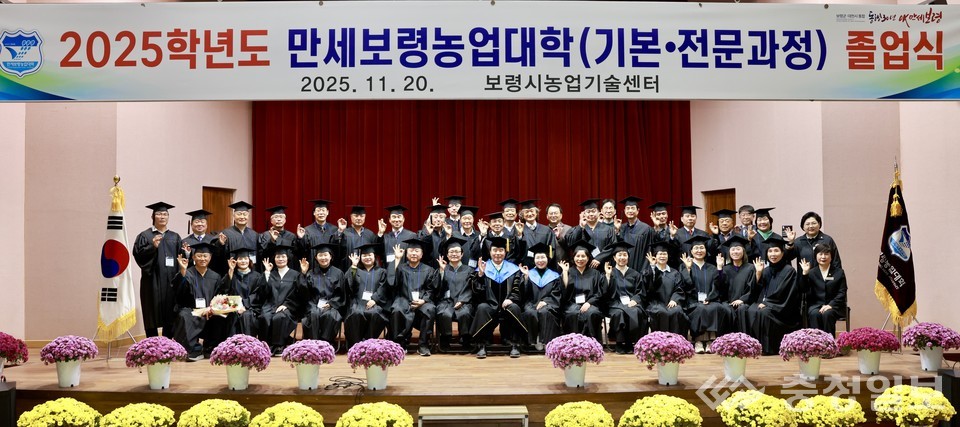 시는 20일 농업기술센터 농업교육관에서 김동일 보령시장과 농업리더 등 관계자가 참석한 가운데 2025학년도 만세보령농업대학 졸업식을 개최했다.