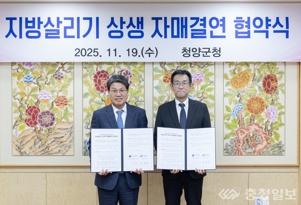 충남 청양군은 지난 19일 청양군청 접견실에서 국토교통부 대전지방국토관리청과 '지방살리기 상생 자매결연 협약'을 체결하고, 인구감소와 지역소멸 위기에 대응하기 위한 중앙·지방 협력체계 구축에 나섰다.