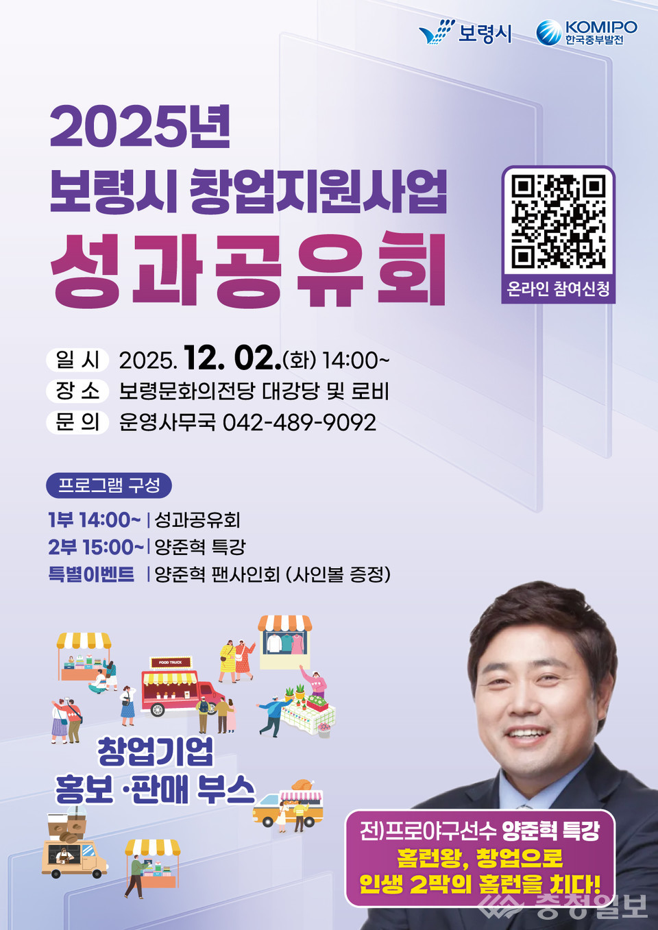 충남 보령시는 12월 2일 오후 2시 보령문화의전당 대강당 및 로비에서 '2025년 창업지원사업 성과공유회'를 개최한다.