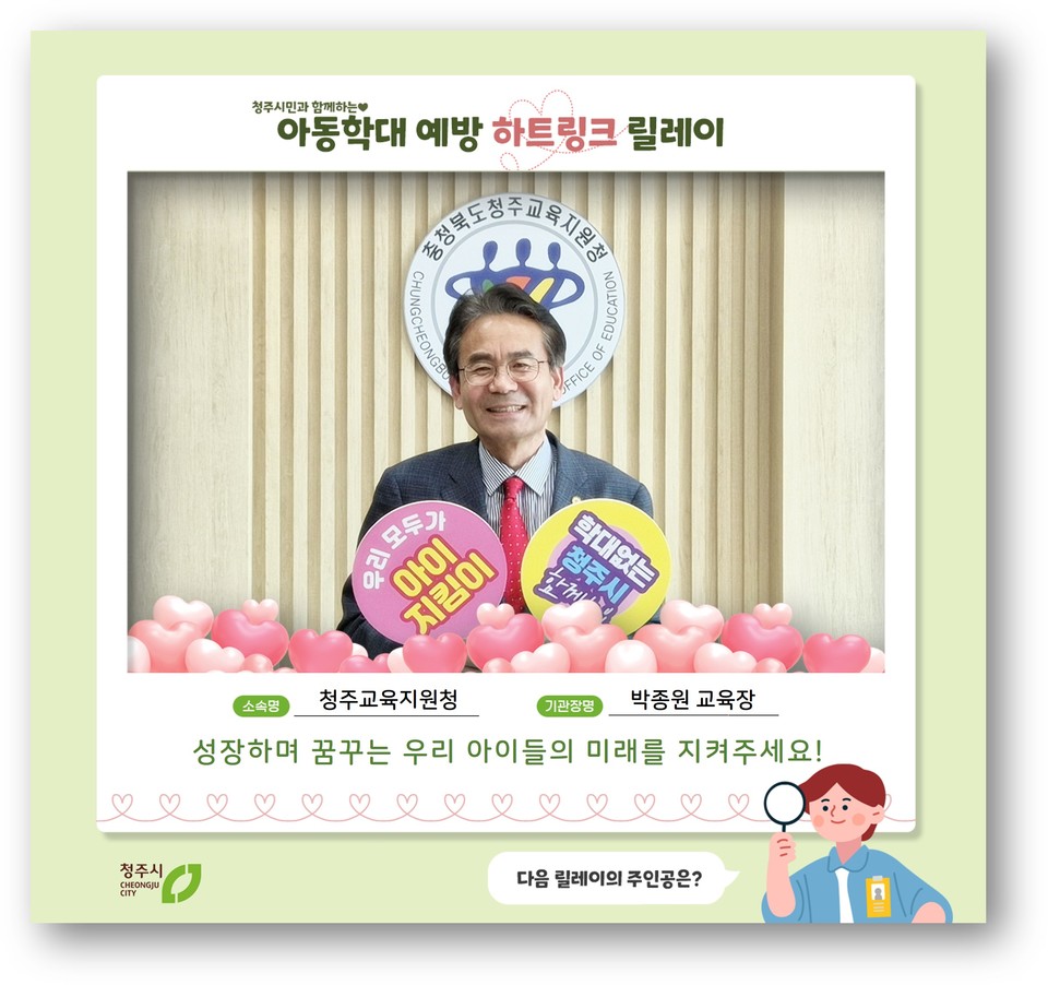 하트링크 릴레이 챌린지는 청주시와 유관기관이 함께 아동학대 예방 메시지를 릴레이 형식으로 전달하는 것이다.