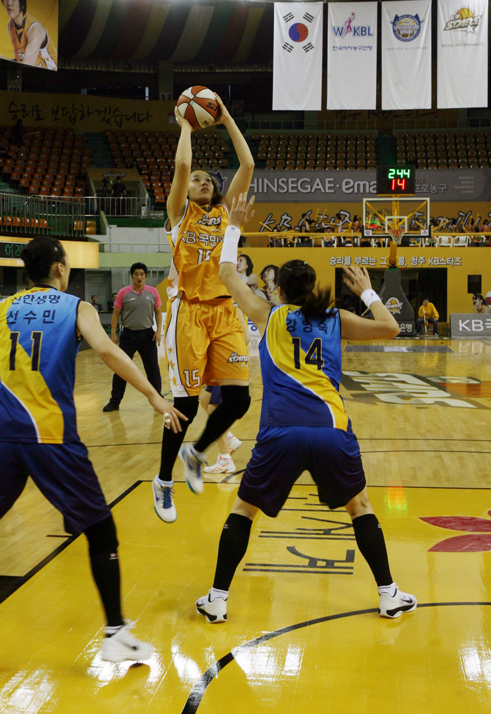 KB스타즈의 정선민은 양 팀 통틀어 가장 많은 26점에 리바운드 10개를 걷어냈으나 팀의 패배로 빛이 가렸다.