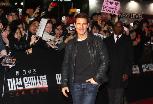 영화 '미션 임파서블 : 고스트 프로토콜' 홍보를 위해 내한한 배우 톰 크루즈가 2일 오후 서울 영등포구 영등포동4가 타임스퀘어에서 열린 레드카펫 행사에서 팬들과 함께하고 있다. /조신희