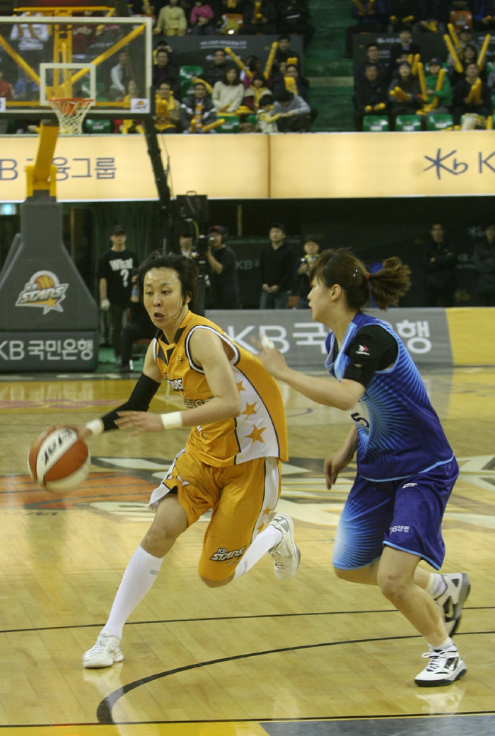 ▲ 2011-2012 신세계·이마트 여자프로농구 4강 플레이오프 2차전이 17일 청주실내체육관에서 열린 가운데, 청주KB스타즈가 구리KDB생명과의 경기에서 76-70으로 승리했다. KB스타즈의 변연하 선수가 수비를 피해 공격을 시도하고 있다. /권보람기자 boram0213@ccdailynews.com © 편집부{루미광고}