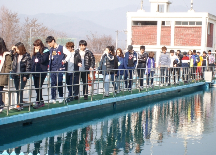 [충청일보] 청주대학교 환경공학과 학생 100여 명이 29일 청주시 상수도사업본부 지북정수장을 찾아 수돗물 생산·공급 과정 등을 견학했다. ▲ 청주대학교 환경공학과 학생 100여 명이 29일 청주시 상수도사업본부 지북정수장을 찾아 수돗물 생산·공급 과정 등을 견학했다. © 편집부{루미광고}