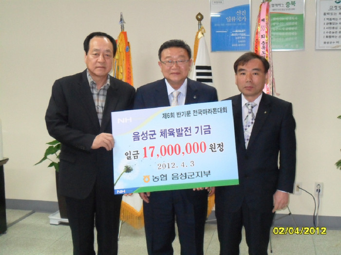 음성군농협은 지금까지 음성체육발전과 군민의 건강증진을 위해 지난 2007년부터 모두 7700만원을 기탁했다.