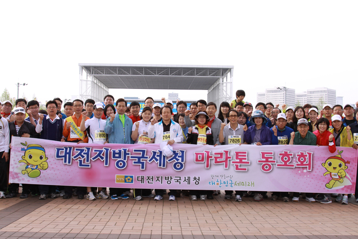 이날 대회에서 박차석 대전지방국세청장과 마라톤동호회 회원들은 '빠르고 편리한 전자세금계산서로 투명해지는 우리 사회', '연 200만원까지 받는 근로장려금 5월에 꼭! 신청하세요', '알뜰한 소비자는 현금영수증을 꼭 챙깁니다' 등의 등 배지를 상의에 부착하고 코스를 완주했다.
