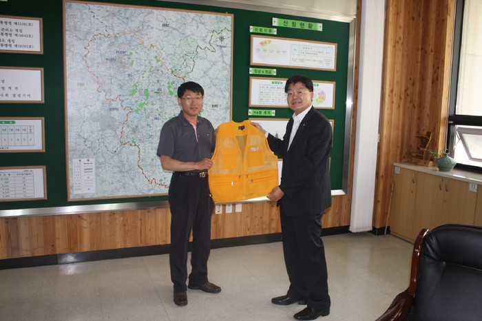[충청일보]보은국유림관리소(소장 권장현)는 12일 한국산업안전보건공단 충북지도원과 공동으로 산림분야 산업재해 발생 최소화를 위한 업무협의를 개최했다.이번 협약식은 안전사고 없는 산림사업장을 만들기 위해 지속적으로 기관간 협력을 다짐하고, 국유림영림단이 착용할 안전조끼 25벌을 전달 받았다./보은=주현주기자▲ 보은국유림 권장현 소장(사진 왼쪽)이 한국산업안전보건공단 충북지도원과 안전사고 예방을 위한 협약을 체결하고 있다. © 편집부{루미광고}