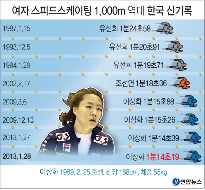 ▲ '빙속 여제' 이상화(24·서울시청)가 국제빙상경기연맹(ISU) 세계스프린트 스피드스케이팅선수권대회 1,000m에서 이틀 연속 한국 신기록을 작성하는 등 쾌속 질주를 거듭하며 대회 동메달을 목에 걸었다.