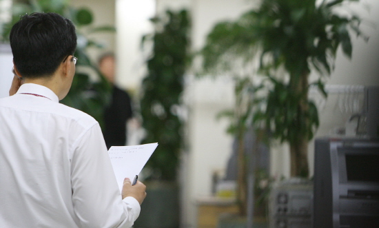 삼성그룹 비자금 의혹 사건을 수사 중인 특별수사 감찰본부(본부장 박한철 검사장)가 사흘째 압수수색을 벌이고 있는 서울 수서 삼성증권 전산센터에서 관계자들이 전화통화를 하고 있다.