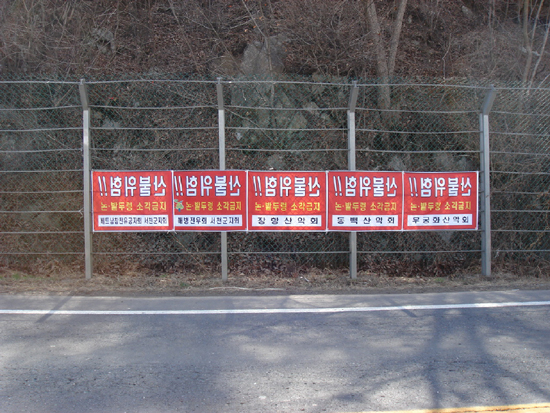 | ▲서천군의 특색 있는 산불방지 홍보물인 문구가 거꾸로 씌어 있는 현수막. |