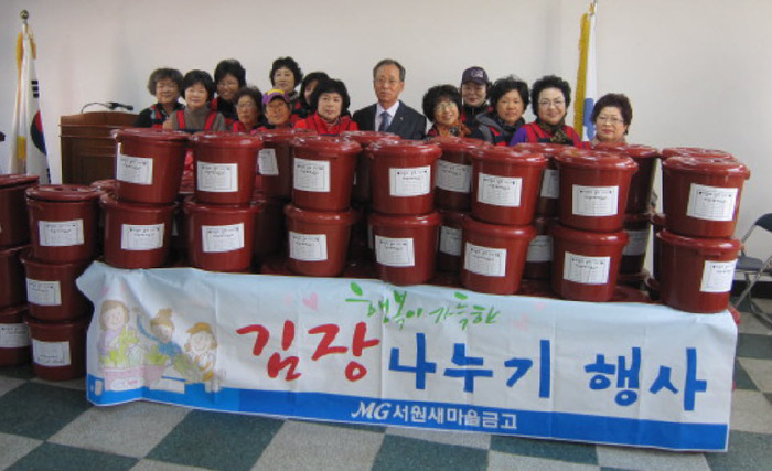 [충청일보 이정규기자] 서원새마을금고는 13일 청주시 25곳 경로당을 비롯해 독거노인 및 기초생활수급자 등 어려운 이웃 100여 가정에 김장김치 1000포기를 전달했다.서원새마을금고 임원과 자원봉사자 30여명은 지난 12일부터 이틀동안 김장담그기 행사를 실시해 이를 준비했다.서원새마을금고 강신권 이사장(사진)은 "새마을금고는 서민과 함께해 온 서민금융기관으로서 어려운 이웃들이 추운 겨울을 따뜻하게 보낼 수 있도록 이번 행사를 열게 됐다"며 "지난 2011년부터 올해까지 이 같은 봉사 활동을 지속하고 있다"고 말했다.▲ 서원새마을금고는 자원봉사자들이 참여한 가운데 김장김치 1000포기를 담가 지역 내 어려운 이웃 100가정에 전달했다. © 편집부▲ 강신권 서원새마을금고 이사장. © 편집부