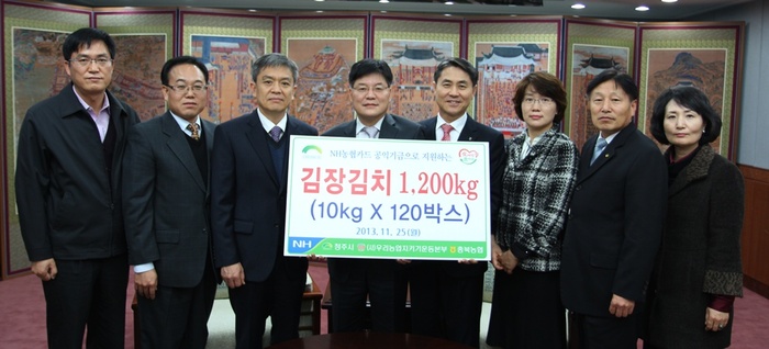 우리농업지키기운동본부 채혁주 본부장은 "올해는 충북을 포함 전국 8도의 1200가정에 김치를 지원한다"며 "앞으로도 우리농업지키기운동본부는 농협과 함께 지역사회공헌활동을 확대·추진하겠다"고 전했다.