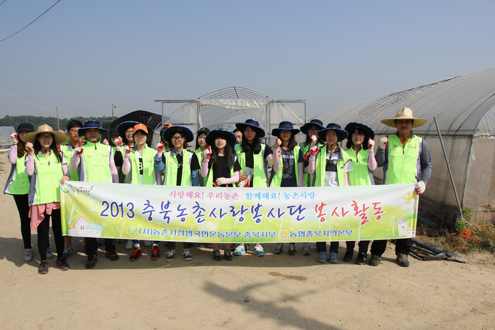 충북농촌사랑자원봉사단( http://www.ifarmlove.com/club/ )은 지난 2008년 6월 발족해 현재 750명의 회원들이 가입돼 있으며, (사)농촌사랑범국민운동본부 기금으로 매년 5~6회에 걸쳐 300여 명의 회원들이 영농철 농촌일손돕기, 환경정화, 재능기부, 재해복구지원 소외계층을 위한 사랑나눔 등 다양한 농촌사랑운동을 전개해 오고 있다.