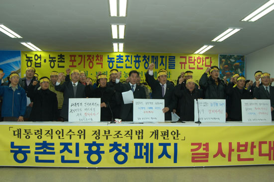 류근찬 국회의원과 이상만 서천군의장을 비롯한 군의원들이 참석한 가운데 열린 이 자리에서 이들은 성명서를 통해 농촌진흥청을 폐지하고 정부출연 연구기관으로 전환한다는 대통령직 인수위원회의 정부기능과 조직 개편안 발표를 강력히 규탄했다.
