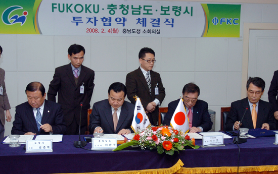 이를 위해 후꼬꾸사는 4일 충남도 소회의실에서 충남도와 투자협약 체결식을 갖고 충남 보령시 관창산업단지 7만 5389㎡에 오는 2012년까지 모두 5500만달러(한화 약 518억원)를 투자, 자동차부품공장을 건설한다.