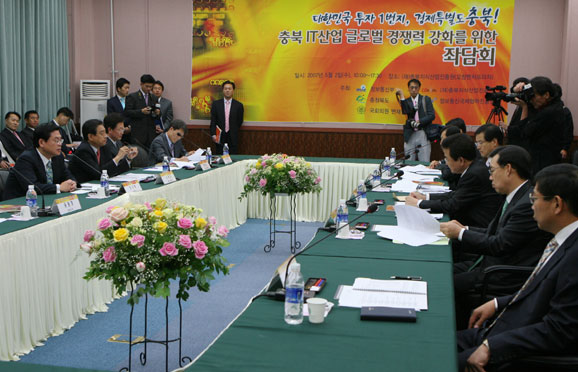 2일 오전 충북 오창에 있는 충북도지식산업진흥원 회의실. 충북에서 잘 나간다는 it업계 벤처업체 대표들과 정·관계 인사들이 머리를 맞대고 진지한 토론을 벌였다.