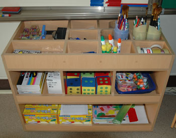 | ▲필수 학습준비물을 손쉽게 사용할 수 있도록 학급별로 마련된 학년 필통. |