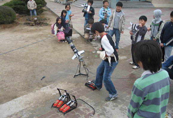 아이들은 이 날 제작을 완성한 후, 운동장에서 자신이 제작한 로켓에 물을 넣어 발사대에 끼워 정해진 과녁판을 겨냥하여 날려보는 기회를 가졌다.