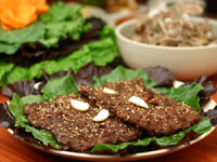 "떡갈비 보세요. 인절미 떡처럼 네모지게 생겼죠? 술안주 겸 별미로 전국에 잘 알려진 우리 광주의 맛이예요. 서민들에게 사랑받죠. 갈비살에 여러 부위의 고깃살을 섞어 푸짐하게 다진 다음 마늘, 생강, 참기름 등으로 만든 갖은 양념을 발라 구워내죠"