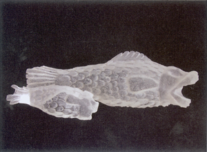 안씨의 '미'(味)는 고정된 틀에 유리가루를 넣어 녹인 유리공예 작품으로 물고기의 비닐과 지느러미가 섬세하게 표현됐다.