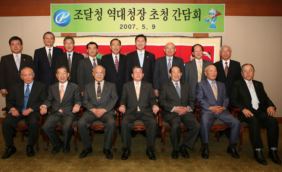 ▲앞줄 왼쪽부터 고재일(4대), 이선기(7대), 백석주(2대), 황인성(초대), 김원희(3대), 김주호(9대), 김만기(10대). 뒷줄 왼쪽부터 진동수(23대), 김경섭(21대), 강정훈(17대), 전세봉(14대), 류재호(16대), 김용민(현 조달청장), 안응모(11대), 김태승(12대), 장홍렬(13대).김용민 조달청장은 지난 9일 오후 7시 강남구 역삼동의 모 음식점으로 역대 청장들을 초청, 지난해 조달사업 성과 및 금년도 업무계획을 설명하고 조달행정 운영의 경험이 있는 역대 청장들로부터 자율구매시대의 조달행정 경쟁력 확보 방안에 대한 조언을 들었다.