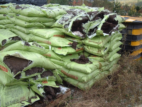| ▲ 계룡시청 앞 옛 계룡시보건소 관용차량 주차장 부지에 가로수와 꽃길 거름으로 사용하고 남은 수백포의 부산물비료가 관리소홀로 인해 찢겨지고 텨져 혈세가 새고 있다는 지적이다. |