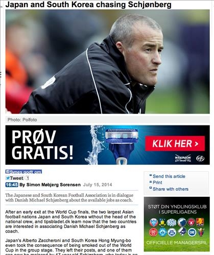 이 매체는 "대표팀 사령탑이 공석이 된 한국과 일본이 덴마크 출신의 쇤베르크 코치에게 관심을 보이고 있다"고 전했다.