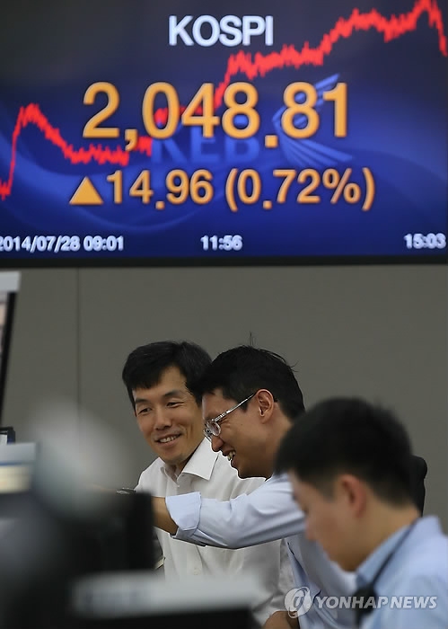 오전 중 2,040선을 딛고 올라선 코스피는 오후에도 상승세를 이어가며 장중 2,053.84를 찍기도 했다. 코스피가 장중 2,050선을 넘어선 것은 지난해 12월 2일 이후 7개월여만이다.