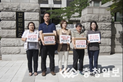 [충청일보 이정규기자] 외환은행 직원들이 26일 하나-외환은 합병절차 중단을 요청하는 탄원서를 헌법재판소에 제출했다.