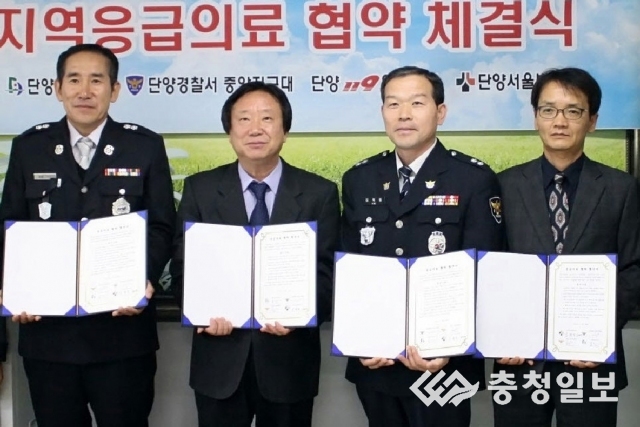 이날 협약에는 단양보건소, 단양경찰서 중앙지구대, 단양119안전센터, 단양서울병원 관계자가 참석해 긴밀한 네트워크 구축을 통한 응급의료 자원을 효율적으로 활용하는 협약에 서명했다.