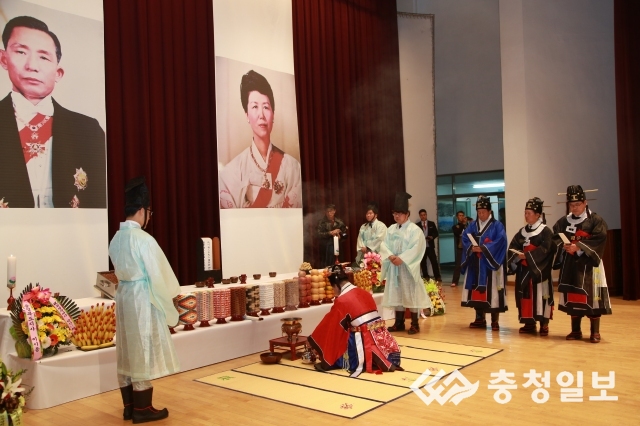 이날 숭모제에서 초헌관(김영만 옥천군수), 아헌관(민경술 옥천군의회 의장), 종헌관(김기덕 옥천교육지원청 교육장)이 제를 올렸고, 육 여사의 약력 소개와 생전 영상물이 상영됐다.