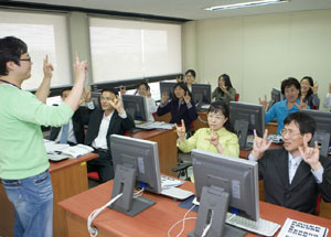 군청에 근무하는 직원 30여명은 지난 4월 19일부터 군청 3층 전산교육장에서 매주 한 차례씩 3개월 과정의 수화교실에 참석 중이다.