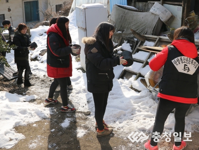 ▲ 단양청소년문화의집 '돋을별 자원봉사동아리'청소년들이 저금통을 털어 어려운 이웃에 연탄을 전달해 귀감이 되고 있다. 돋은별 자원봉사동아리는 지난 2일 대강면 A씨(72)의 가정을 방문해 연탄 500장을 전달했다. 이날 전달된 연탄은 동아리 소속 청소년 19명이 새해 봉사활동으로 각자의 저금통을 털어 연탄 값을 마련했다.