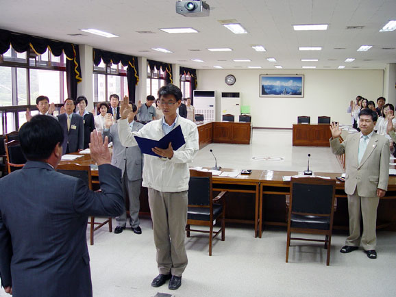 ▲보은교육청(교육장 박진규)는 6월1일 오전 교육청 대회의실에서 전 직원이 참석한 가운데 공무원 행동강령실천 결의대회(사진)를 갖고 청렴 분위기 조성과 부패방지를 위한 결의 대회를 가졌다.© 보은 = 주현주