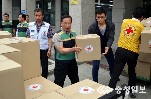 또 가정에 머무는 동안 생활불편을 최소화하기 위해 지난 12일 대한적십자사충북지와 엘마트에서 지원한 식생활용품 쌀, 라면, 치약 등 8종으로 구성된 긴급구호물품을 전달했다.