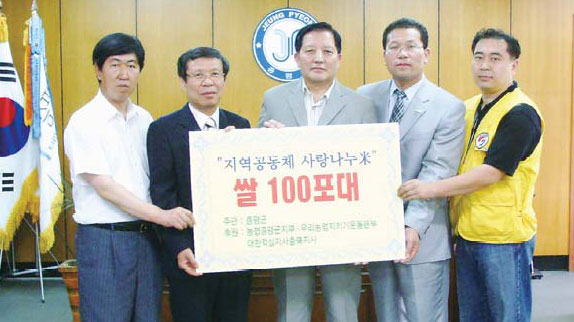 ▲ 농협중앙회 증평군지부는 지난 8일 지역에서 소외된 결손가정 및 독거노인에게 100포대의 쌀을 대한적십자사를 통해 전달했다. © 증평 = 남기윤