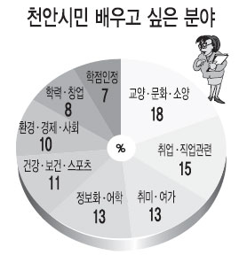 이 같은 조사는 천안시가 지난 4월 26일부터 지난 10일까지 27개 읍·면·동지역 시민 1300명을 대상으로 실시한 '천안시 평생학습 시민의식조사'에서 나타났다.