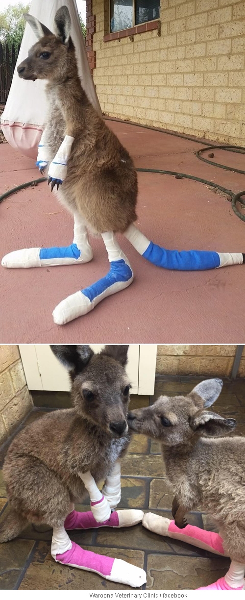 해외 누리꾼 사이에서 인기가 높은 새끼 캥거루는 호주 와루나 동물 병원에서 치료를 받고 있다.