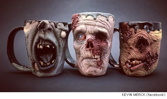 미국의 도예가 케빈 머크의 작품들이다. 진흙을 재료로 다듬고 깎고 구워서 만든 머그잔은 영화에 나오는 좀비의 모습 판박이다.