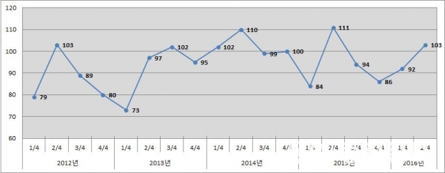 충북지역 2분기 BSI 103… 전 분기比 11p ↑